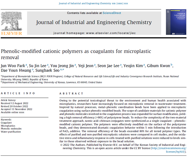 2. 제목: Phenolic-modified cationic polymers as coagulants for microplastic removal